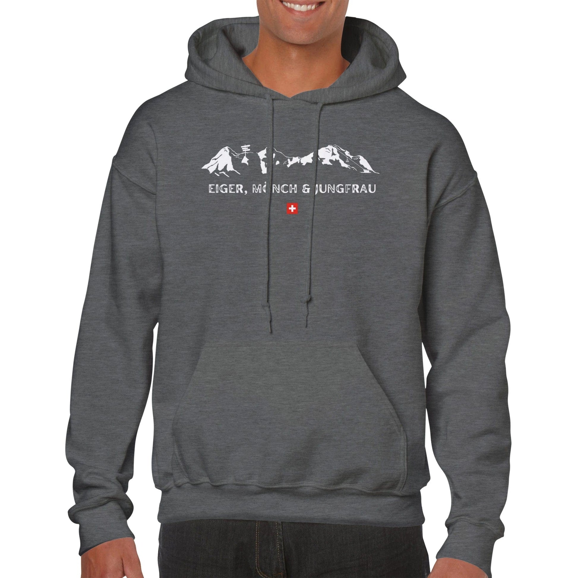 Introducing the Swiss Alps: Eiger, Mönch, and Jungfrau Skyline | Hoodie - the perfect way to embrace the spirit of Switzerland! This hoodie is designed for travel and outdoor enthusiasts who have a connection with the majestic Swiss Alps. It's also a great gift for anyone who loves the outdoors and wants to stay warm and comfortable while exploring.